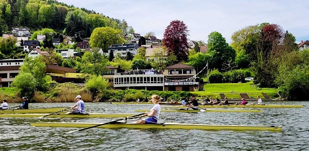 Acht Boote starteten zum Anrudern (Foto: Jens Thomson)(cr) (km) Am 28. April eröffnete die Rudergesellschaft Eberbach mit dem traditionellen Anrudern die Saison 2024 in ihrem 125. Jubiläumsjahr.