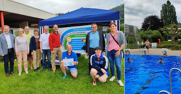 Das Eberbacher Freibad in der Au hat für die Saison 2024 seine Pforten geöffnet und lud am gestrigen Mittwoch ab 7 Uhr zum Schwimmen ein. Erstmals kamen zu diesem Anlass der neue Leiter der Stadtwerke (SWE) und Städtischen Dienste (SDE), Wolfgang Kressel, und Bürgermeister Peter Reichert ins Badezentrum, um gemeinsam mit Mitgliedern des Fördervereins und Mitarbeitenden der SDE auf den Start der Badesaison anzustoßen.
