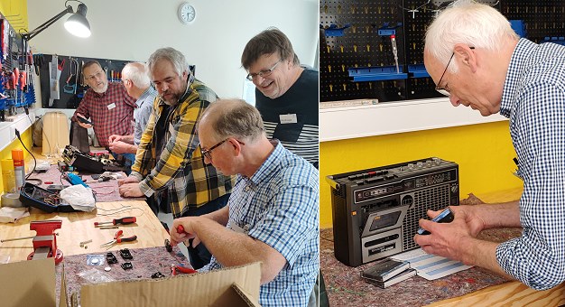 Am vergangenen Samstag waren mit Ulrich und Jörg Grözinger, Martin Mai, Andreas Persch und Frank Tewes sechs ehrenamtlich Tätige vor Ort, die sich um defekte Kleinmaschinen, Akkus, Tablets oder Kopfhörer kümmerten und diese meist reparieren konnten.