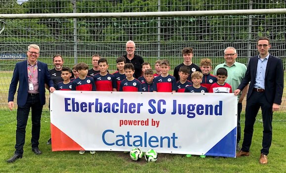 Der Konzern investiert zukunftsorientiert in den Standort Eberbach Ganz l. Dr. Lutz Deitinghoff, ganz r. Fabian Kapp. (Foto: privat)(bro) (ts) Die Catalent Eberbach Germany GmbH ist ab der kommenden Saison Hauptsponsor der Abteilung Jugend beim Eberbacher Sportclub 2019 e. V.