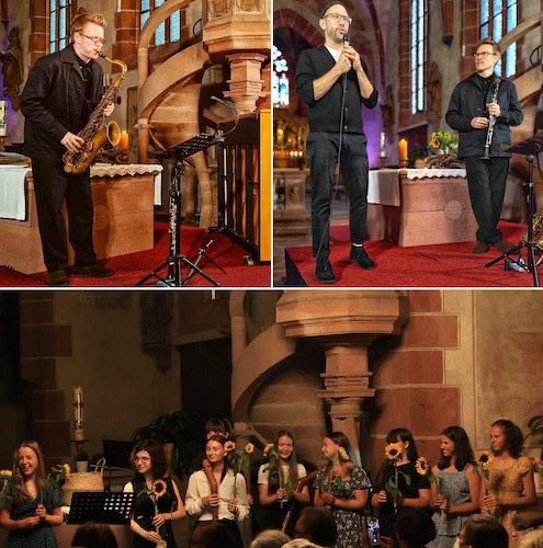 Musizierte Landschaften - Talentshow Hirschhorner Künstlerinnen und Künstler (Fotos: privat)(bro) (as) Wie gelingt es, die eigene Mystik Islands in die Welt zu transportieren? Die Antwort auf diese Frage lieferte am 3. Juli das Duo Stefan Karl Schmid (Saxophon) und Lars Duppler (Klavier) an einem Ausklang-Abend in der Hirschhorner Klosterkirche.