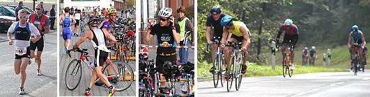 Timo Bracht siegt erneut beim Beerfelder Duathlon Nach rund 12 Minuten waren die ersten Läufer zum ersten Mal an Start und Ziel, weitere 13 Minuten später wurde aufs Rad gewechselt, Timo Bracht (3.Foto v.l.) an vierter Position wechselnd, Der steile Anstieg zum Sensbacher Friedhof war die erste größere Bewährungsprobe auf dem Rad. Das rechte Foto zeigt eine Verfolgergruppe unmittelbar hinter den Führenden mit Timo Bracht, der zu diesem Zeitpunkt bereits auf der Abfahrt Richtung Beerfelden war. (Fotos:Claussen)(jc) (scb) Pünktlich um 9.30 Uhr schickte gestern Bürgermeister Gottfried Görig 225 Duathleten auf die erste Laufstrecke. Bei kühlen aber für die Teilnehmer eher angenehmen Temperaturen gingen die Athleten auf die insgesamt 40,5km.