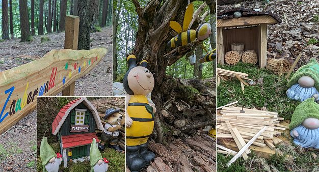 Die “Kleinen Strolche†nutzen das Gelände neben dem TSV-Sportplatz regelmäßig für ihre Waldwochen, und die Kinder pflanzten dort selbst auch junge Bäume für die nächste Waldgeneration. Alex Scheuermann hat schon vor einigen Jahren ein Flugzeug aus Holz als Spielgerät dort aufgestellt, und die inzwischen installierten kleinen Fabelwesen-Welten sind einen Besuch wert. Insbesondere Karin Scheuermann hat mit ihrem Mal- und Basteltalent viel zur Magie des Zauberwalds beigetragen.
