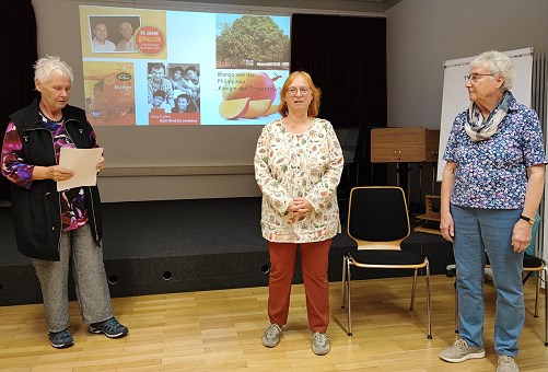 Hildegard Grein, Ute Krey und Ruth Leifeld (Foto v.r.), ehrenamtlich Tätige beim Weltladen, berichteten über Mango-Projekte des Paters Shay Cullen auf den Philippinen. Der Pater hat die Organisation 1974 gegründet, die sich für sexuell missbrauchte sowie inhaftierte Kinder einsetzt. Leifeld beschrieb das Land und Leben sowie die politische Situation auf den Philippinen. Vor allem die Lebenssituation von Kindern, die aufgrund von Armut oft zur Prostitution gezwungen werden.