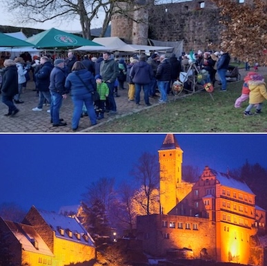 Burg Hirschhorn in weihnachtlichem Flair  (Fotos: privat)(bro) (uw) Nach mehreren Gesprächen mit den Landesbetrieben Bau und Immobilien Hessen konnte endlich die zweite Auflage der Hirschhorner Burgweihnacht festgelegt werden.