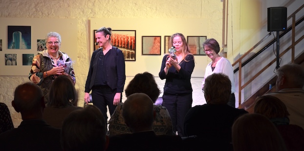 Zunächst gab es jedoch zur Einstimmung in diesen Abend nach einem kleinen Sektempfang erlebte Geschichten aus dem Alltag von ehrenamtlichen Hospizbegleitenden zu hören. Eingerahmt durch die musikalische Unterstützung von Steffi Müller, Hans-Georg Bley und Tobias Barginde trugen Ulrike Göhrig und Ursula Clifford vom Hospizverein berührende, nachdenkliche und auch erheiternde Begebenheiten vor.