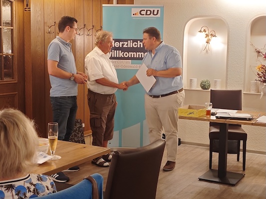 Ein besonderes Highlight des Abends war die Ehrung von Arthur Baumbusch, der für seine 50-jährige Mitgliedschaft in der CDU ausgezeichnet wurde. Haas würdigte Baumbuschs jahrzehntelange Treue und betonte, wie wichtig solche langjährigen Mitglieder für den Zusammenhalt der Partei seien. Für 25 Jahre Mitgliedschaft konnte er Helmut Schupp ehren, dem er ebenso für seine Arbeit im Ortsverband Schollbrunn dankte.
