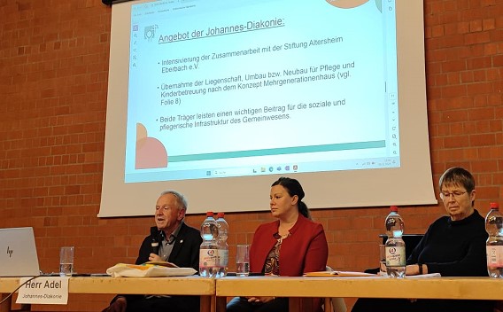 Johannes-Diakonie stellte ihre Überlegungen vor (Foto: Claudia Richter)(cr) Zu einer Informationsveranstaltung mit Verantwortlichen der Johannes-Diakonie Mosbach waren die Mitglieder des Vereins Stiftung Altersheim Eberbach e.V. am Mittwochabend, 6. November, eingeladen. Im evangelischen Gemeindehaus ging es um die mögliche Übernahme des ehemaligen Seniorenheims Dr.-Schmeißer-Stift (DSS) in der Luisenstraße und dessen weitere Nutzung.