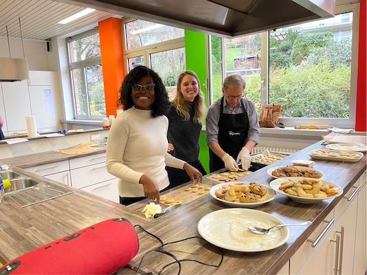9.352 Plätzchen gebacken und verpackt  (Foto: privat)(bro) (rh) Am vergangenen Wochenende verwandelte sich die Schulküche der Eberbacher Steigeschule erneut in eine Backstube. Gemeinsam mit Mitgliedern der Rotaract Clubs Heidelberg und Buchen backten die Eberbacher Rotarier Weihnachtsplätzchen.