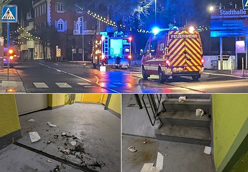 Toilettenpapier in Brand gesetzt und geflüchtet (Fotos: Hubert Richter)(hr) Grober Unfug führte heute gegen Abend zu einem Feueralarm in der Innenstadt.