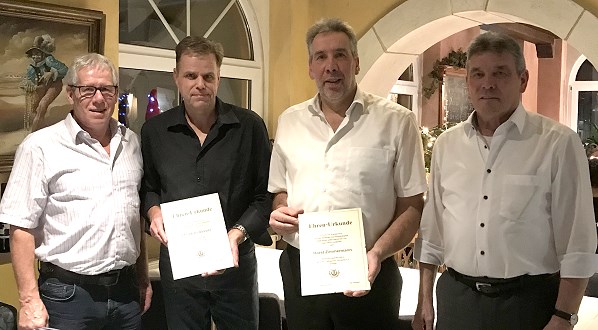 Zwei neue Ehrenmitglieder (Foto: privat)(hr) (uz) Bei der Weihnachtsfeier des MGV Sängerlust Rockenau in der Trattoria Enoteca Rockenau gab es dieser Tage hohe Ehrungen.