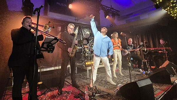 Wurde in der ersten Zeit noch etwas zurückhaltend mitgewippt, taute das Publikum dann doch nach und nach auf, bis die Partystimmung im ausverkauften Saal schließlich kräftig wogte. So wurde bis nach Mitternacht getanzt und mitgesungen. Die beiden Vokalparts waren mit Sabine Künster und Douglas Weaden bestens besetzt. Die beiden Stimmen ergänzten sich hervorragend und ermöglichten ein breites Repertoire an Songs. Die mitreißende Performance der Frontleute und der insgesamt zehnköpfigen Band riss die Besucherinnen und Besucher mit, so dass die Trägheit der Weihnachtstage schnell vergessen war.
