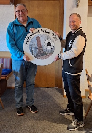 Thomas Bäuerle sicherte sich mit dem besten Schuss, einer 10,3, die von Vorjahressieger Timo Schäfer gestiftete, handbemalte Scheibe. Das Motiv zeigt den Katzenbuckelturm.