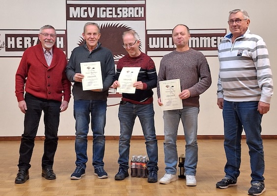 Aus dem Bericht des 1. Vorsitzenden Karlheinz Walter konnte man entnehmen, dass das Jahr 2024 im Großen und Ganzen ein sehr positives Jahr für den MGV war. Alle geplanten Feste konnten dank vieler Helferinnen und Helfer abgehalten werden. Ganz besonders freute es Walter, dass die Sängerzahl von neun auf zwölf Sänger angestiegen ist. Roland Schneider, Josip Vaga und Sebastian Lenz wurden als aktive Sänger durch einige Aktionen gewonnen. Auch 2025 werden gerne noch Neusänger aufgenommen.