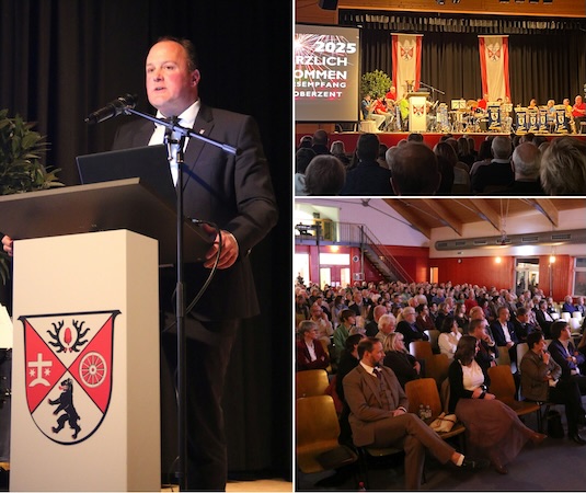 Viel Infos und mahnende Worte (Fotos: Thomas Wilken)(tom) Vollgepackt mit Informationen aus dem vergangenen Jahr und einem Ausblick auf das schon über drei Wochen laufende war der Oberzent-Neujahrsempfang in der gut besuchten Alten Turnhalle. Die Besucher mussten kürzlich bei knapp drei Stunden Dauer einiges an Sitzfleisch mitbringen. Die Feuerwehrkapelle Beerfelden und der MGV Sensbachtal sorgten für Auflockerung zwischen der Rede und den Präsentationen von Bürgermeister Christian Kehrer. Das Schlusswort sprach Stadtverordnetenvorsteher Dirk Daniel Zucht.