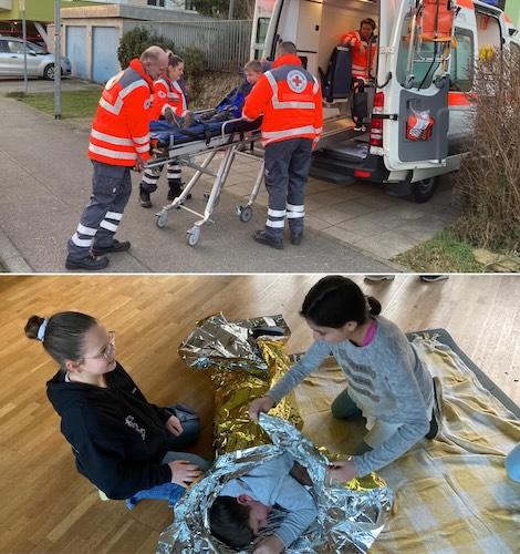 Auch Kinder können helfen (Fotos: privat)(bro) (fw) Am vergangenen Samstag trafen sich 14 Kinder in der FeG Eberbach, um ein neues Abenteuer bei „Kids in Action“ zu erleben. Einmal im Monat treffen sich hier Kinder zwischen sieben und zwölf Jahren. Die Angebote gehen von Kochen, Backen, handwerkliche Projekte bis zu Outdoor-Erlebnissen. Dieses Mal besuchten Jens Fischer und sein Team vom DRK Eberbach die Gruppe.