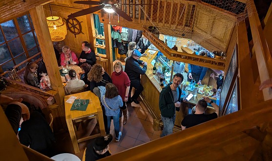 Am Freitag, 31.Januar, empfing das Gastgeberteam um Diana Majer-Morgenthaler ab 17 Uhr die ersten Gäste im Bistro “Zur Insel” in der Passage am Neuen Markt 13. Und bald darauf war das zweigeschossige gemütliche Lokal (früher “Viertele”, später “Bierhäusel” und zuletzt eine Tapasbar) bis auf den letzten Platz belegt. Majer-Morgenthaler, die auch Vorsitzende der “Lebenshilfe Eberbach” ist und das Lokal gemeinsam mit ihrem Mann betreibt, bietet neben Getränken Salate, Suppen, Flammkuchen und Flammbrote mit maritimen Namen wie “Windstärke 8“ oder “Sanfte Brise“ an. Durch die Beschäftigung von Menschen mit Handicap erhält das Lokal auch einen inklusiven Charakter. Das Team wünscht sich nach eigener Aussage “einen Treffpunkt für Jung und Alt, in dem das Miteinander gepflegt wird, sich Menschen kennenlernen, ins Gespräch kommen und den Tag mit einem gepflegten Pils oder einem Gläschen Wein von lokalen Winzern ausklingen lassen”. Immer wieder soll es auch Live-Musik von Künstlerinnen und Künstlern aus Eberbach und Umgebung geben.