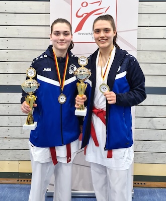 Lena und Anna Wolz mit drei Goldmedaillen im Gepäck V. l.: Lena Wolz mit ihrer Schwester Anna Wolz. (Foto: privat)(bro) (aw) Am vergangenen Wochenende wurden die offenen Hessenmeisterschaften im Karate in Frankfurt ausgetragen und boten den Zuschauern spannende Wettkämpfe. Zahlreiche Athletinnen und Athleten aus verschiedenen Vereinen und Bundesländern waren gekommen, um die besten ihrer Kategorien zu ermitteln. Besonders erfolgreich präsentierten sich die Eberbacher Schwestern Anna und Lena Wolz vom Karate-Centrum Rhein-Neckar e. V. aus Wiesloch.