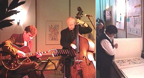 Magische Augenblicke auf Papier gebannt Bernhard Sperrfechter (l.) und Gerd Mayer-Mendez beim Eröffnungs-Konzert der Jazz-Tage und der Stähle-Ausstellung (r.). (Fotos:Richter)(hr) (ra) Zehn Tage Jazz auf höchstem Niveau machen die Reihe "JazzMe" nun zum Festival. Zur Eröffnung wurden Bilder präsentiert, die der Eberbacher Künstler Armin Stähle während der letzten Jahre jeweils auf offener Bühne und vor Publikum gezeichnet hat. Da Stähle schwer erkrankt ist, konnte er die gestrige Vernissage nur sitzend, nicht zeichnend, wie es geplant war, begleiten.