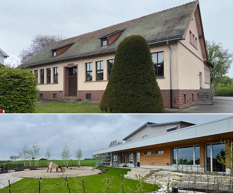 Bürgersaal Waldkatzenbach wird saniert und KinderCampus eingeweiht Oben: In Waldkatzenbach soll die ehemalige Schule, mit dem Bürgersaal, saniert werden. Dabei werden bereit für die Planungen Kosten in Höhe von knapp 100.000 Euro fällig. Unten:
