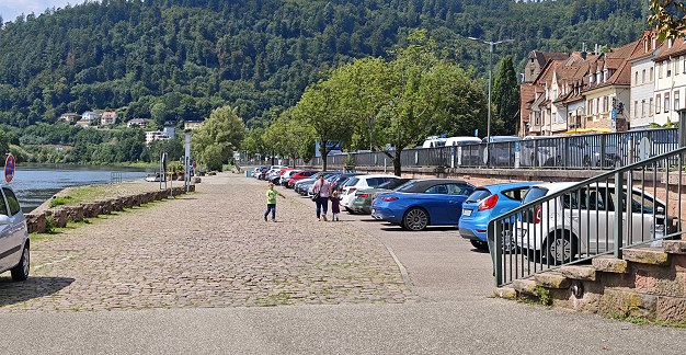 Aufenthaltsbereich mit Flair statt Autoparkplatz am Fluss (Foto: Hubert Richter)(cr) Fast 4 Mio. Euro will Eberbach nach aktueller Schätzung bis zum Stadtjubiläum in zwei Jahren in die Sanierung und Umgestaltung des Neckarlauers investieren.