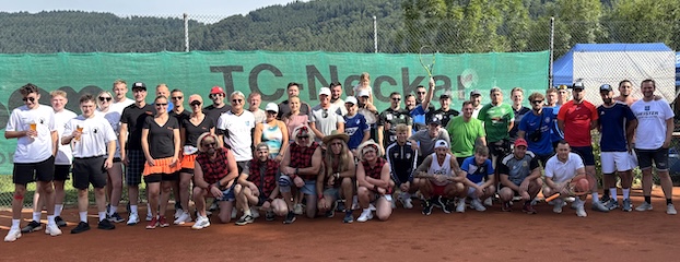 Rekordbeteiligung bei strahlendem Sonnenschein (Foto: privat)(bro) (eg) Bei strahlendem Sonnenschein spielten am Samstag, 9. August, über 60 Teilnehmerinnen und Teilnehmer auf der Tennisanlage des TC Neckar.