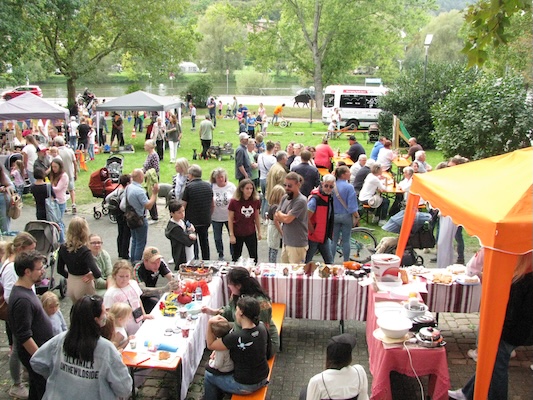 Als Standgebühr für den Kinderflohmarkt wird eine Kuchenspende erbeten. Den selbstgebackenen Kuchen (mit Zutatenliste) bitte am 3. Oktober am Kuchenstand unterhalb des Thononplatzes abgeben. Die Anzahl der verfügbaren Standplätze ist begrenzt, daher wird um eine Anmeldung gebeten (Link s. u.) oder per Tel. (06271) 8099888.