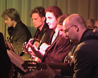 Als eine "ausgewachsene Band" stellte Bernhard Sperrfechter das Frankfurter Gitarrenorchester vor, welches sich nicht, wie irrtümlich angekündigt, aus einem Quartett, sondern aus fünf Gitarristen, einem Kontrabassisten und einem Schlagzeuger zusammensetzt, allesamt blutjung.