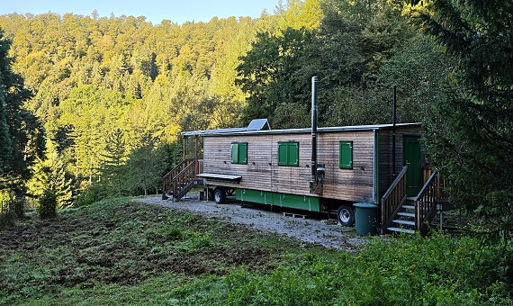 Ausgedehnte Fragerunde - Freibadfilter werden saniert Der Wagen des gescheiterten Waldkindergartens im Arboretum wartet noch auf den Verkauf. (Foto: Claudia Richter)(cr) In der letzten öffentlichen Sitzung des Eberbacher Gemeinderats am Donnerstag, 18. September, gab es etliche Fragen aus dem Gremium an die Verwaltung.