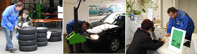 Erste Winterreifenbörse - Prüfstellenleiter nicht ganz zufrieden (Fotos:Claussen)(jc) Premiere beim Eberbacher TÜV: Erstmals führte die hiesige Prüfstelle eine Winterreifenbörse durch. Kostenlose Sehtests und Überprüfungen von Pkw- Lichtanlagen wurden ebenfalls angeboten. Der ADAC war mit Pannenberatung vertreten und der MSC Eberbach sorgte für die Bewirtung. Prüfstellenleiter Hans-Peter Knab war mit der Resonanz noch nicht ganz zufrieden, konnte den gemachten Erfahrungen aber durchaus positives abgewinnen. Man sehe die Veranstaltung als Test für das nächste Jahr, in dem man die diesmal etwas knapp und kurzfristig ausgefallene Werbung deutlich anziehen möchte. Man habe klar erkannt, dass es Bedarf an einer solchen Börse in Eberbach gebe und man die Resonanz bei Käufern und Verkäufern noch deutlich steigern könne.