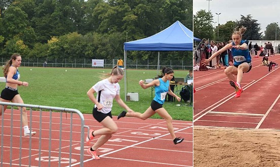 In die Herbstsaison gestartet Links Aloka Hable beim Sieg über 100m, rechts Ylva Polzin beim Weitsprung. (Fotos: privat)(hr) (mf) Nach langer Wettkampfpause über die Sommerferien absolvierten die Kinder und Jugendlichen der Leichtathletikabteilung des TV Eberbach wieder ihre ersten Wettkämpfe.
