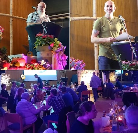 MyWay-Abende der Freien evangelischen Gemeinde Eberbach Referent Siegmar Borchert (oben l.), Referent Bernhard Kohlmann (oben r.). Essen und reden in gemütlicher Atmosphäre (unten). (Fotos: privat)