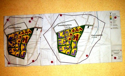 Für GIP soll ein Zweckverband gegründet werden Stichstraßen mit Wendehammer sollen das neue Gewerbegebiet erschließen. (Foto:Böhm)(ub) In der letzten Sitzung des Schönbrunner Gemeinderates stellte Bürgermeister Roland Schilling einen neuen Entwurf der aus dem Jahr 1974 stammenden öffentlich-rechtlichen Vereinbarung über eine vereinbarte Verwaltungsgemeinschaft (vVG) zwischen der Stadt Eberbach und der Gemeinde Schönbrunn vor. Die alte Vereinbarung soll im Zuge der durch das neue Gewerbegebiet „GIP“ ausgelösten Änderungen neu gefasst werden. Die wichtigste Änderung wird nach einem Beschluss des Eberbacher und Schönbrunner Gemeinderates sein, dass die Stadt Eberbach „anstelle der Gemeinde Schönbrunn in eigener Zuständigkeit auch die verbindliche Bauleitplanung, die Sicherung der Bauleitplanung, die Regelung der baulichen und sonstigen Nutzung, die Bodenordnung sowie die Erschließungsplanung für das Gewerbegebiet GIP (Gewerbe im Park) auf der Gemarkung Schönbrunn“ wahrnehmen wird. Der Entwurf sieht auch eine Bestimmung vor, wonach die Gemeinde Schönbrunn zustimmt, dass eine eventuell durch die Stadt Eberbach übernommene Aufgabe als Untere Baurechtsbehörde für den Bereich der vVG gilt.