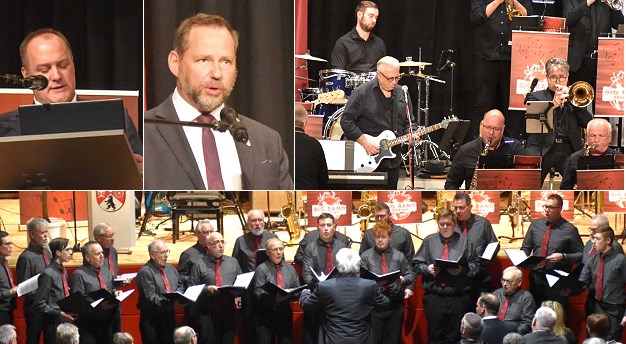 Gemeinsam die Zukunft gestalten Redner oben v.l.: Bürgermeister Christian Kehrer und Stadtverordnetenvorsteher Dirk Daniel Zucht. (Fotos: Barbara Gusz)(bg) Zahlreiche Bürger und Bürgerinnen sowie Vertreter des öffentlichen Lebens kamen am Sonntag, 18. Januar, in der alten Turnhalle in Beerfelden zusammen, um beim Neujahrsempfang der Stadt Oberzent auf das vergangene Jahr zurückzublicken und einen Ausblick auf die kommenden Monate zu erhalten.