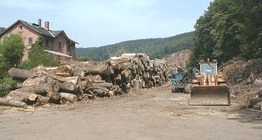 Holzbetrieb darf nicht erweitern (Foto:Archiv)(hr) Einstimmig abgelehnt hat der Eberbacher Gemeinderat gestern abend einen Bauantrag in Gaimühle. Ein dortiges Forstservice- und Holzhandelsunternehmen wollte auf dem Gelände des ehemaligen Bahnhofs seinen Holzlagerplatz teilweise befestigen, eine Verladerampe anlegen, Materialcontainer aufstellen sowie eine Arbeits- und Maschinenhalle errichten.