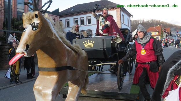 Der von der Karnevalgesellschaft Kuckuck (KGK) wieder bestens organisierte “Gaudiwurm” setzte sich am Faschingsdienstag kurz nach 14 Uhr in der Friedrichsdorfer Landstraße am Übergang zur Odenwaldstraße in Bewegung. Es ging in Richtung Neuer Markt und von dort durch die Bahnhofstraße, über den Bahnhofsplatz und weiter durch die Luisenstraße, dann nach links in die Friedrich-Ebert-Straße zum Leopoldsplatz. Dort begrüßten Zugmarschall Jan-Peter Röderer und Eberbachs Bürgermeister Peter Reichert in Bütteluniformen mit “Pickelhauben”-Helmen die teilnehmenden Gruppen und kommentierten sie für die Zuschauer.