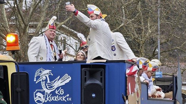 Polizei, DRK und THW sorgten für Sicherheit am Zugweg, und der MGV Liederkranz unterstützte die KG Kuckuck beim Verkauf der Zugplaketten, die zur Finanzierung der Umzugskosten beitrugen.