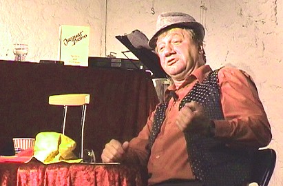Rasantes Feuerwerk aus Mimik und Sprache (Foto:Richter)(hr) Einen unterhaltsamen Kabarettabend der Spitzenklasse präsentierten am Freitag Kulturlabor und Eberbacher Werbe-Gemeinschaft (EWG) ihrem Publikum in der Galerie ARTgerecht. Mit Detlev Schönauer gastierte ein Sprachakrobat und Meister der Dialekte im Vorfeld des Eberbacher Apfeltags. Hauptfigur des studierten Physikers ist der französelnde Bistro-Wirt Jacques aus dem Saarland, der allerhand Geschichten zu erzählen hat. In diese verpackt Schönauer in rasanter Folge allerhand Charaktere vom bekannten Literaturpapst Marcel-Reich-Ranicki über den bayrischen Pfarrer, den sächsischen Lehrer, den hessischen Künstler bis ,den italienischen Restaurant-Besitzer bis hin zum singenden Heino. Dabei zeigte sich Schönauer mimisch genauso flink wie sprachlich. Die Pointen prasselten geradezu auf die rund 120 Zuschauer nieder und sorgten für Lachsalven am laufenden Band.