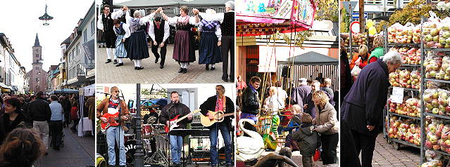 Freundliches Wetter lockte wieder Tausende (Fotos:Claussen)(jc) Tausende Besucher nutzten heute das freundliche Herbstwetter zum Besuch des Eberbacher Apfeltags. Damit bestätigte sich auch in diesem Jahr wieder die Beliebtheit dieses inzwischen fast traditionellen Eberbacher Herbstfestes mit verkaufsoffenen Geschäften. Zahlreiche Firmen und Institutionen beteiligten sich mit Straßenverkaufs- und Informationsständen in der Innenstadt, und die örtliche Gastronomie sorgte für die passende Bewirtung. Wie in jedem Jahr kam es auch auf den Zufahrtsstraßen und um die Parkplätze in Zentrumsnähe herum wieder zu Gedränge um jede Parklücke.