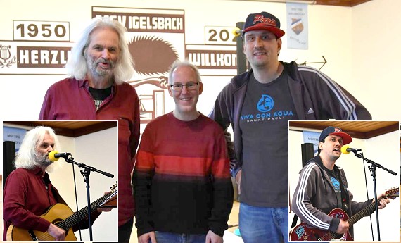 Musik und soziales Engagement für den guten Zweck vereint V.l. Paul Danquard, Simon Dost und Patrick Libèral. (Fotos: Barbara Gusz)(bg) Am Weltwassertag, 22. März, fand in der Sängerhalle in Igelsbach ein Benefizkonzert zugunsten von “Viva con Agua de St. Pauli” sowie der Hilfsorganisation “Helfende Engel Neckar-Odenwald e.V.” statt.