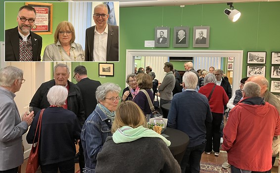 Ăśber 75 Gäste – darunter auch die ehemaligen und aktuellen Unternehmer der beiden Firmen – versammelten sich im Langbein-Museum, um einen tiefen Blick in die DNA der lokalen Wirtschaft zu werfen. Die Exponate zeigen weit mehr als nur technische Produktionsabläufe. Die Schau vermittelt einen kompakten, aber eindrucksvollen Einblick in die Geschichte der Familie AndrĂ©, von ihrer Vertreibung aus Frankreich im 17. Jahrhundert über die prägenden Zwischenstationen in Frankfurt und Offenbach bis hin zur Gründung ihrer Betriebe in Hirschhorn. Hier entstanden Produkte, die international gefragt waren, wie z. B. in Mekka oder im äthiopischen Kaiserpalast. Die Ausstellung verdeutlicht die Reichweite der beiden Hirschhorner Betriebe und verweist auf die Spuren ihrer Erzeugnisse weltweit bis heute. Seitens der Textilfärberei wurden Hannelore und Harald GroĂź als frühere Inhaber begrüĂźt sowie der aktuelle Eigentümer Michael Thierling. Die alte und die neue Dekodur wurde von Volkmar AndrĂ© und Rolf van den Berg repräsentiert, die sich beide nicht nehmen lieĂźen, an diesem Abend teilzunehmen.