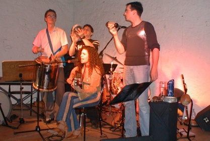 Nach der Pause war der Titel "Estrella e Lua nova" von Heitor Villa-Lobos, dem in vielfacher Hinsicht revolutionären musikalischen Grossmeister Brasiliens, angesagt. Das Solo der Sängerin mit akustischer Gitarre hatte kammermusikalische Qualitäten und stand im markanten Gegensatz zu den fast experimentellen Rhythmen der übrigen Stücke. Das nächste Stück "Danca da Solidar" führte den Gedanken einer "Comunidade" konsequent weiter: nach und nach gesellten sich die anderen Musiker mit Minimal-Instrumenten wieder zu ihrer Sängerin, um eine Art musikalischen Rütli-Schwur zu leisten: "Nicht nur eine Band, sondern vier Freunde wollen wir sein - venceremos...". Um ein Haar hätte das Publikum mit roten Nelken geworfen.