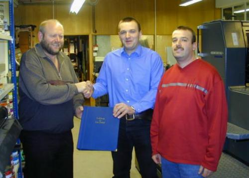 Neue Notenmappen für den Fanfarenzug Das Bild zeigt den Geschäftsführer der Firma "Star-Notenschreibpapiere", Lorenz Rhode (Mitte), bei der Übergabe der neuen Mappen an den 1. Vorsitzenden des Fanfarenzugs, Günter Müller, (l.), und den Zeugwart des Fanfarenzugs, Martin Schramm (r.). (Foto:Müller)(bm) Ein durfte der Fanfarenzug der Stadt Eberbach dieser Tage von der Firma Star-Notenschreibpapiere in Empfang nehmen.