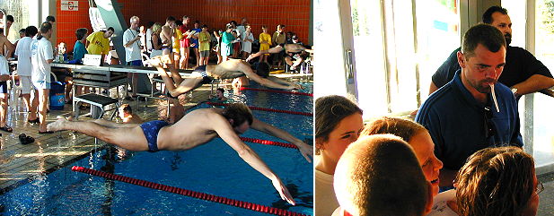 Box-Weltmeister Sven Ottke fieberte bei Schwimmfest mit Michael Sigmund beim Start über 100 m Schmetterling und Sven Ottke bei einer Autogramm Stunde (Fotos:privat)