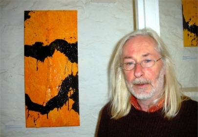 Was hat sich der Künstler dabei gedacht? Künstler Erhard Folkerts vor einem Nesselbild.(Foto:Böhm)(ub) Die Vernissage in der Galerie "maledetta arte" am 16. November war ein voller Erfolg. Viele interessierte Gäste aus nah und fern bestaunten bei professioneller und stimmungsvoller Livemusik von "Traffic Jam" die ausgestellten 32 Bilder und zwei Skulpturen von sechs internationalen Künstler/innen. In einer vergnüglichen Rede sprach der israelische Künstler Oded Netivi über die Neuigkeiten aus der Fachwelt, erläuterte Vernissagen und stellte die obligatorische Frage "Was hat sich der Künstler dabei gedacht?"
