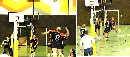 Nur kurzzeitige Probleme an zweitem Heimspieltag Szenen des Matches gegen Helmstadt (Fotos:Claussen)(jc) (hb) Vorgestern trat die erste Herrenmannschaft der Volleyballabteilung des TV Eberbach zu ihrem zweiten Heimspieltag in dieser Saison an. Wie auch am ersten Heimspieltag konnte man auf alle Spieler des TVE zurückgreifen.
