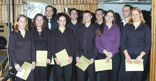 (tb) Im Rahmen des gestrigen Winterkonzertes des Jugendblasorchesters Waldbrunn konnten auch einige Mitglieder des Orchesters für langjährige Mitgliedschaft geehrt werden. Es waren dies Stefanie Kreisel (fünf Jahre) sowie Beate Edelmann, Sebastian Emmerich, Nicole Hammel, Lisa Kappes, Julia Neukirchen und Carina Stoll, die dem Jugendblasorchester Waldbrunn 10 Jahre angehören. Bereits 15 Jahre gehört dem Orchester Jens Holzinger an, der bekanntlich mit Peter Schäfer das Orchester leitet.