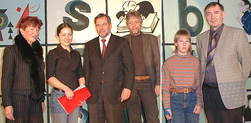 Stiftung fördert begabte Pianistin V.l. Karla Köhler, Wolfgang Köhler, Karina Kuz, Dieter Uhrig sowie Sabrina Schneider und Walter Zuck. (Fotos:C.Richter)(hr) Im Rahmen einer Schulfeier wurden heute in der Realschule Eberbach gleich zwei Mädchen "beschenkt": Zum einen Sabrina Schneider, die bei "Jugend trainiert für Olympia" den ersten Preis als Kreismeisterin errang. Ihr wurde von Rektor Walter Zuck ein Büchergutschein überreicht.