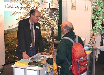 Odenwald informiert auf Europas größter Touristikmesse Hubert Falkenberger von der Touristikgemeinschaft Odenwald im Gespräch mit Messebesuchern. (Foto:Richter)(hr) Auf Europas größter Publikumsmesse für Touristik und Freizeit, der "Caravan, Motor, Touristik" (CMT) in Stuttgart, ist auch wieder der Odenwald mit einem Info-Stand vertreten. Die Messebesucher können sich seit heute morgen bis Sonntag, 26.Januar, über Urlaubs- und Freizeitangebote im "sagenhaften" Odenwald informieren.