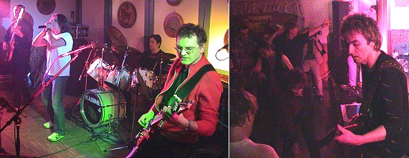 Rock -Klassiker im Doppelpack (Fotos:Richter)(hr) "Kabine 4" - das sind Bernd Knapp und Hannes Beier, zwei Mitglieder der ehemaligen Rockomotive Eberbach, und drei weitere Musiker aus der Region. Was die erst im Juli 2002 neu geründete Formation drauf hat, zeigte sie gestern abend bei der gut besuchten Rocknacht im Pleutersbacher Schützenhaus. Zu hören war der schon bei der Rockomotive bewährte Mix aus Rock-Klassikern, gespickt mit einigen Akustik-Nummern. Wer tanzen wollte, kam voll auf seine Kosten. "Kabine 4" teilte sich den Abend mit der Heidelberger Band "Justice" um den Gitarristen und Sänger Hans Schmitt, der in Eberbach kein Unbekannter ist. Sie räumten mit knallhart gespielten Rock-Evergreens der letzten Jahrzehnte kräftig ab.